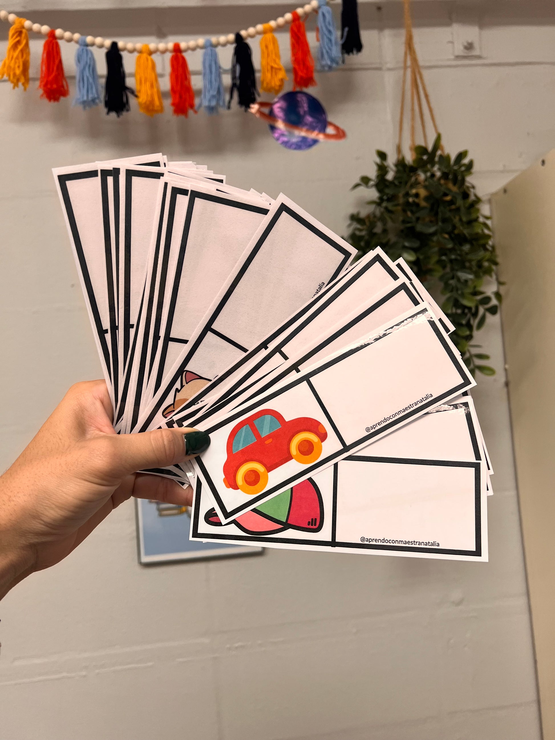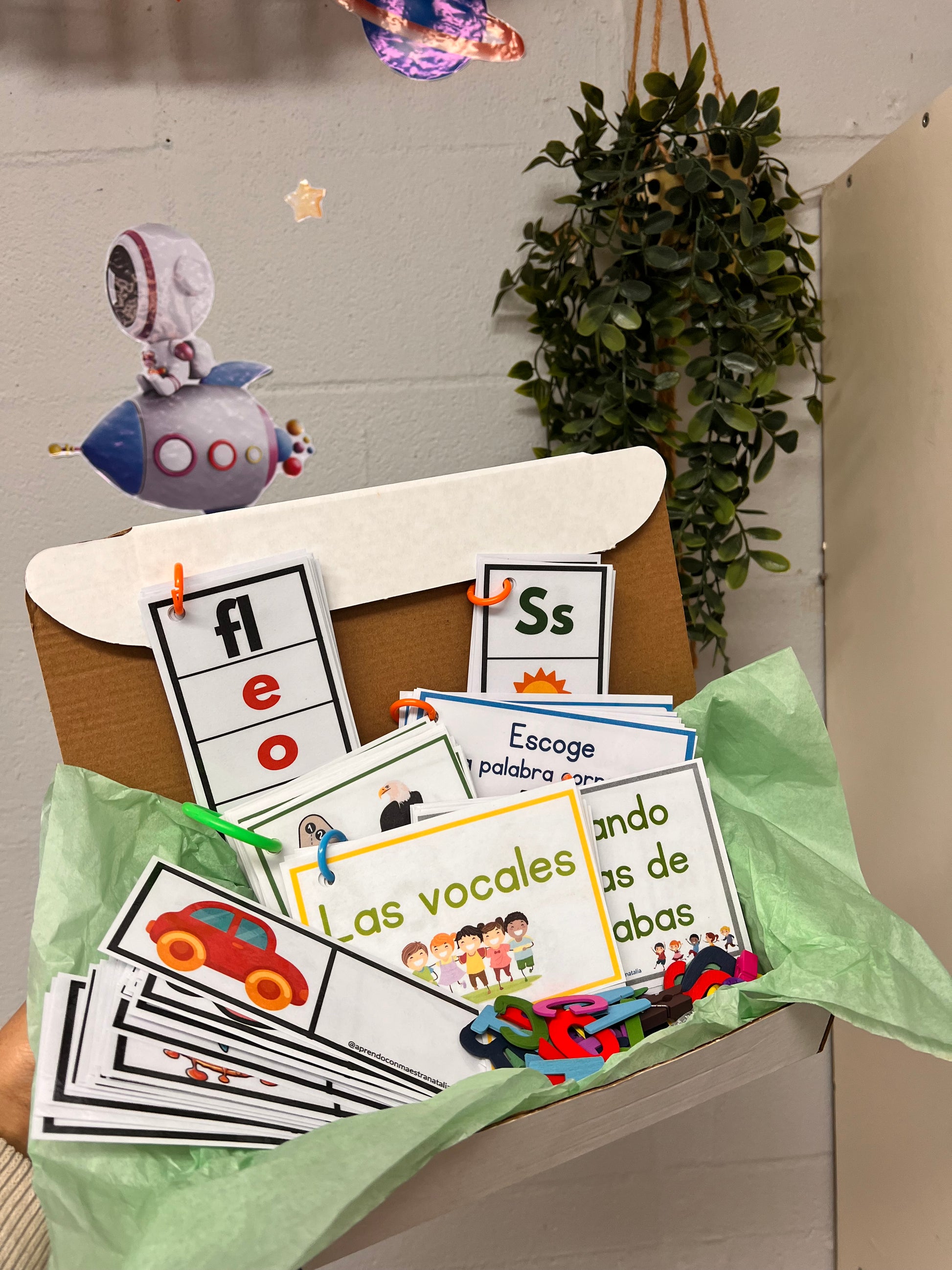 El lectura BOX incluye 7 llaveros de diferente destrezas. vocales, fonemas, sílabas, trisilabas y más.